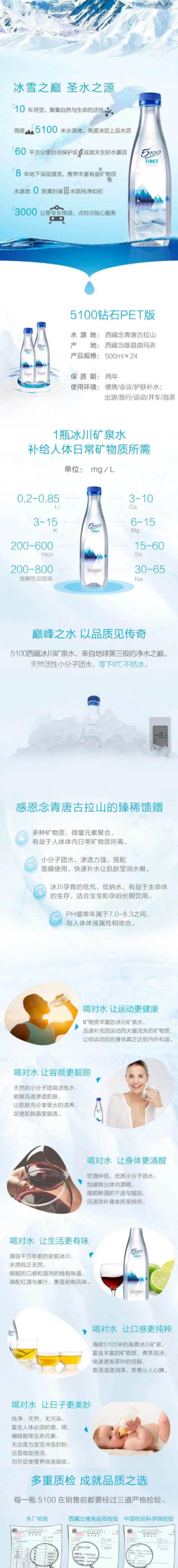 西藏5100 鉆石冰川礦泉水 500ml*24瓶/箱